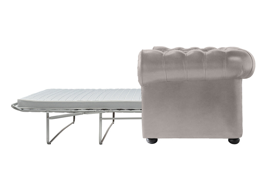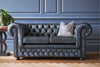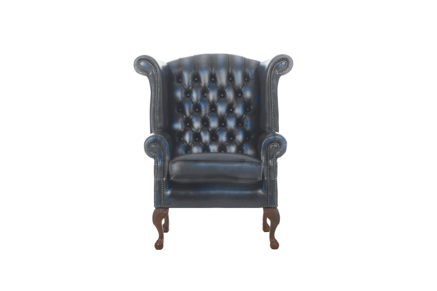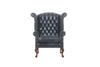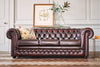- Fully upholstered in Antique leather with hand-buttoned arms, back and border