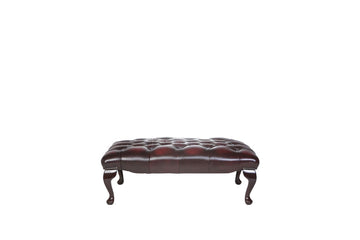 Upholstered in our Antique or Milton leather, the Queen Anne Leather Benchstool has an elegant silhouette with slender wooden legs and a Chesterfield-inspired hand-buttoned foam cushion.
