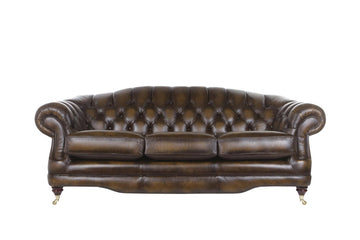 - Upholstered in superior antiqued leather, carefully rubbed back to highlight the appearance of ageing